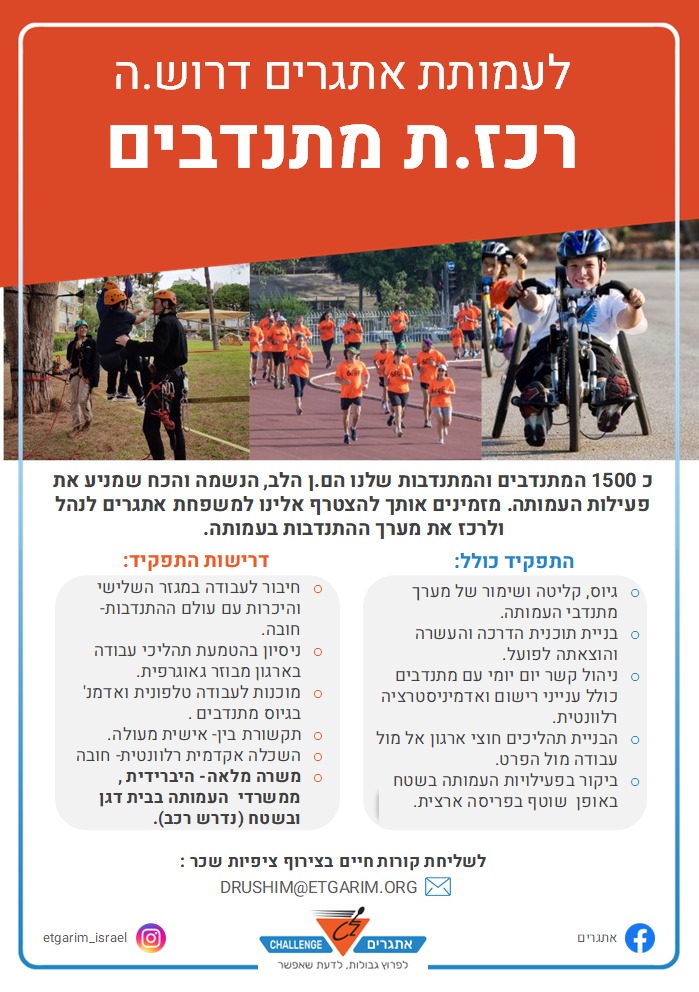 לתחום החבל התהליכי בעמותת אתגרים דרושים/ות מדריכים/ות